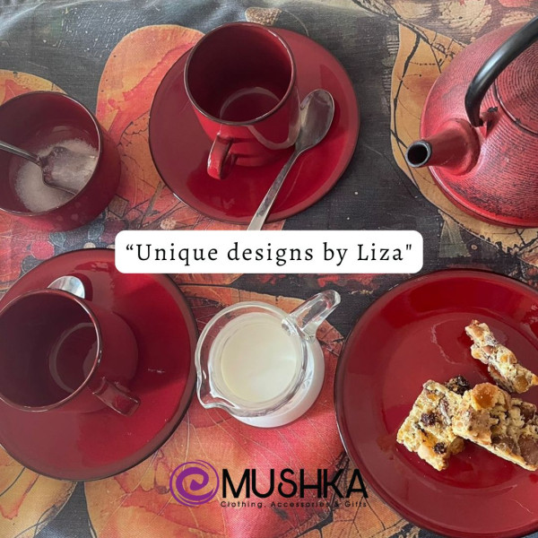 Mushka produces its own clothing range. Comfort is primary. Colourful flowing tunics, funky band pants and three-quarter pants all locally made and from good quality fabrics. Add to this the ever-popular Tie Dye range of Dresses, both Long and Short.